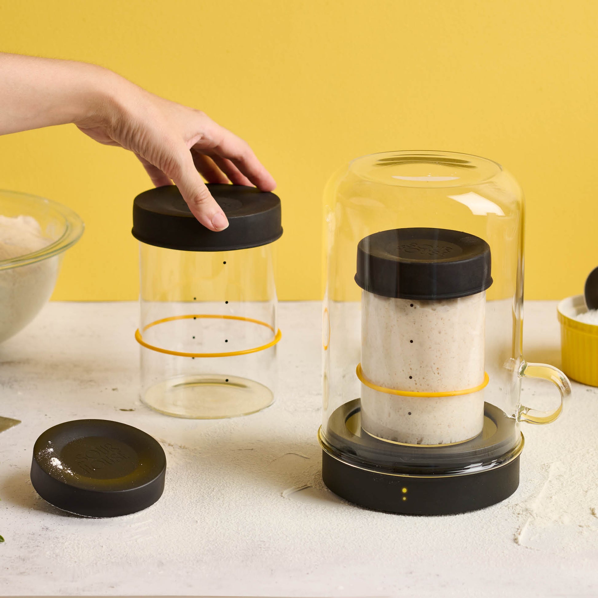- a transparent, borosilicate glass cloche so bakers can see their starter from anywhere in their kitchen